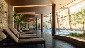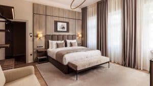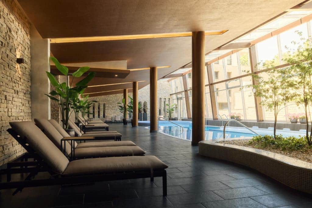 Installé dans un palais du XVIIIe siècle au cœur de la vieille ville de Balatonfüred, l’Anna Grand Hotel cultive un art de vivre à l’européenne. Entièrement restaurée, l’adresse a conservé son architecture néoclassique, ses salons d’apparat et ses volumes généreux, tout en y ajoutant un spa contemporain de 1 200 m², une piscine intérieure et un restaurant revisitant les classiques hongrois, le tout dans un cadre où chaque table paraît être une fenêtre ouverte sur la culture locale. L’Anna Café offre un refuge pour les conversations lentes, les cafés à l’ombre ou encore les douceurs sucrées.